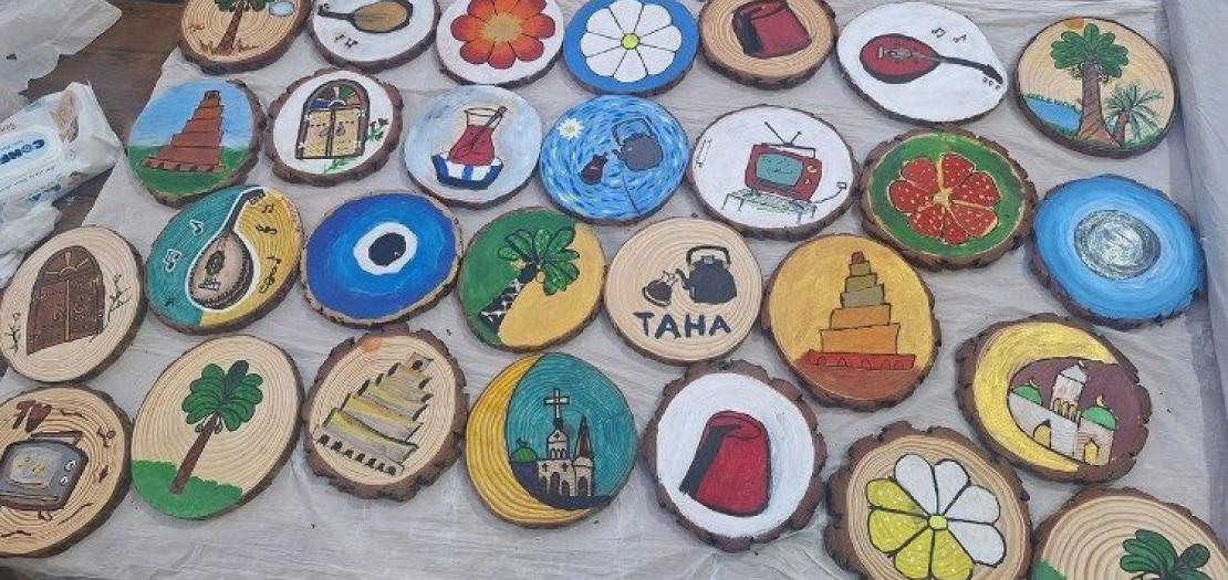 At a long table just outside the monastery of Mar Behnam in Iraq’s Nineveh plains, a group of young people are painting. They produce small pictures featuring symbols of Iraqi culture: an oud, a glass of mint tea, a mosque, a church, the Ziggurat of Ur.