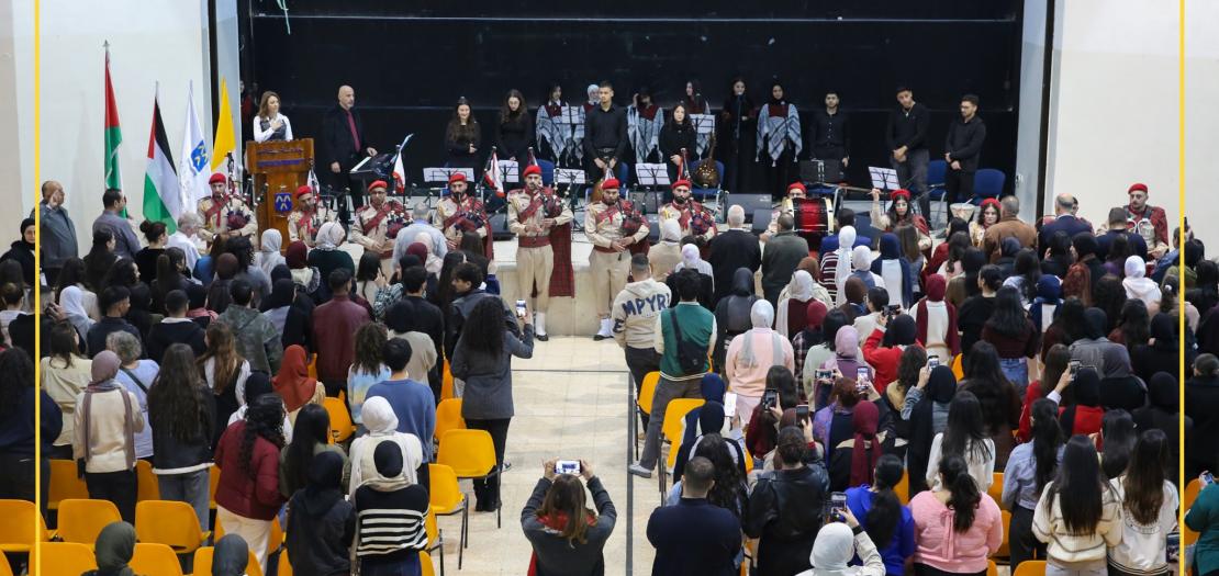 The celebration featured musical performances by the University’s Wajd Musical group led by Dr. Odeh Rishmawi and a spiritual reflection on the meaning of Christmas by Fr. Garrett Gundlach, Assistant Coordinator in the Institutional Values Department. The University’s Tarweedeh Dabkeh Troupe also presented two traditional dance pieces, adding a rich cultural dimension to the evening.