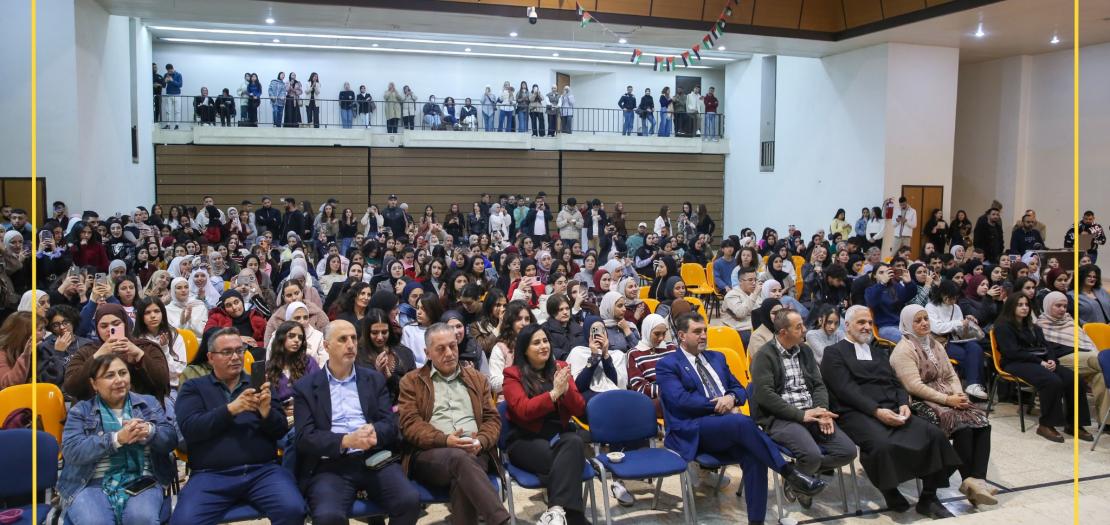 During the gathering in the auditorium, Dr. Mohammad Awad, dean of students, reaffirmed Bethlehem University’s mission to provide an environment grounded in compassion, solidarity, and transformative education. He emphasized that moments like this celebration reflect the spirit of a student community determined to rise above challenges and contribute to a better future for Palestine.