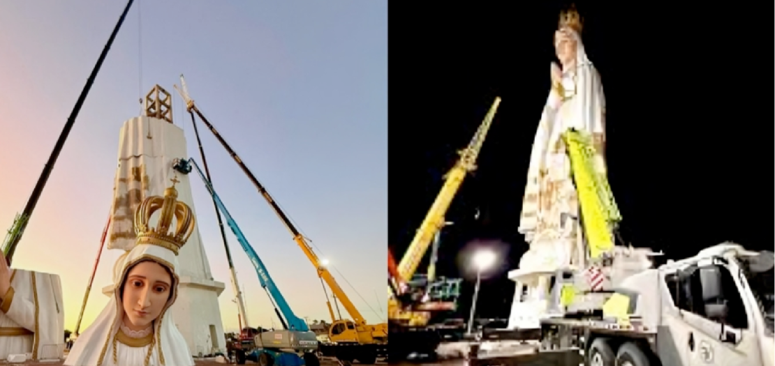 The first pieces crafted by sculptor Ranilson Viana arrived in Crato from the city of Petrolina in Pernambuco. The monument to Our Lady of Fatima, composed of several levels that will be assembled, rises 51 meters. The first pieces will be installed in October.