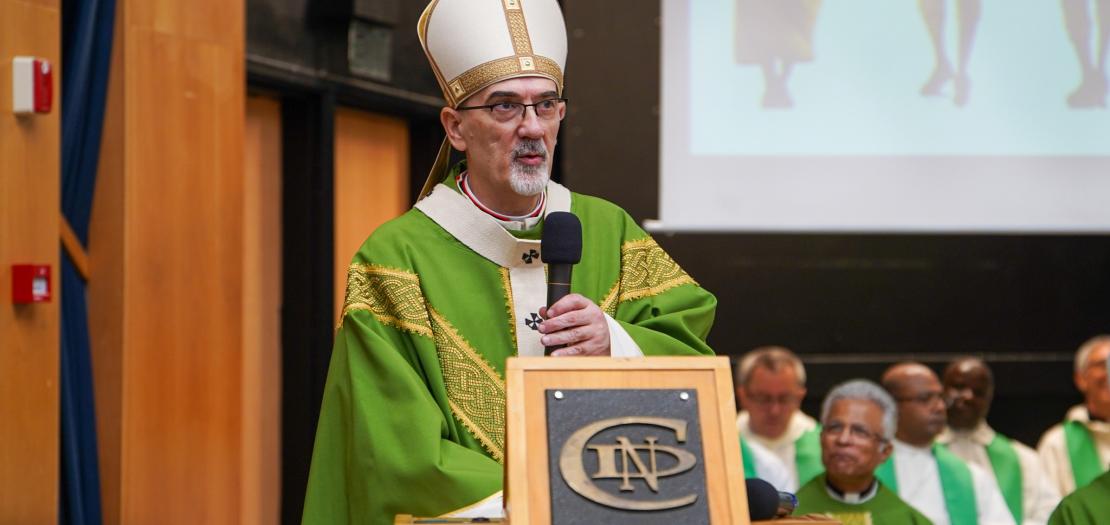 I am glad to be able to meet you on this important diocesan occasion. Indeed, the celebration of Migrant’s Day is an opportunity for us to reflect, pray and give thanks. Reflect on the current situation of tens of thousands of people living among us. To place ourselves in your listening, giving voice to your expectations, fears, difficulties, but also to your joys and determination. To pray for you and with you and thus continue to build together our ecclesial community of the Holy Land. To thank the Lord for your presence, for your witness of authentic, solid and determined faith, and to thank those among you, religious men, women religious and volunteers who spend their lives to support, help and make this portion of the Church of the Holy Land grow.