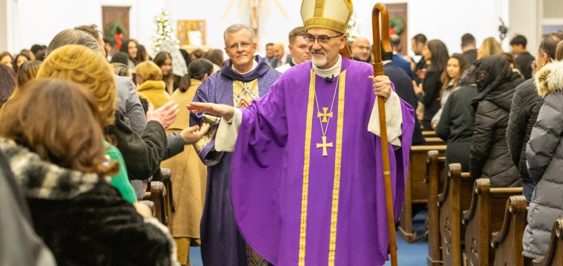 The visit began at St. Thomas Chaldean Catholic Church in West Bloomfield, where the faithful filled the church to celebrate Mass with the Patriarch and hear his message firsthand. The Mass was concelebrated by Detroit Archbishop Edward J. Weisenburger, Chaldean Bishop Francis Y. Kalabat.
