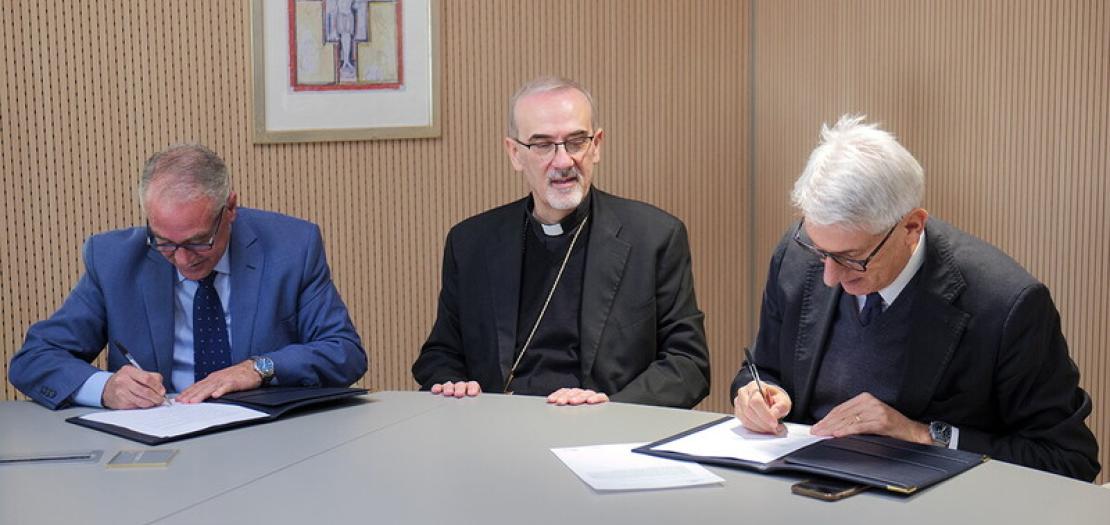 The agreement was signed by Mr. Tiziano Onesti, President of Bambino Gesù Hospital, and Dr. Jamil Koussa, Director General of Saint Joseph Hospital, in the presence of Ambassador Issa Kassissieh, Ambassador of the State of Palestine to the Holy See, and Sr. Valentina Sala of the Sisters of St. Joseph of the Apparition.