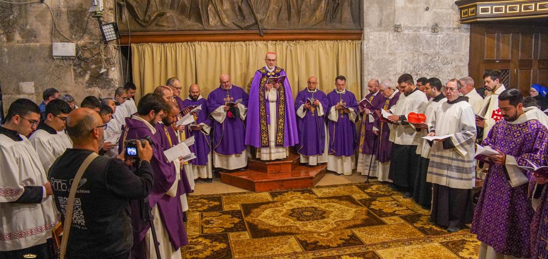 The following night, the friars of the Custody gathered again at the Holy Sepulcher for the solemn Office of Readings and the vigil celebration, presided over by the Custos of the Holy Land, Fr. Francesco Ielpo. This custom, attested at least since 1754, accompanies all the Sundays of Lent, from the first until Palm Sunday.