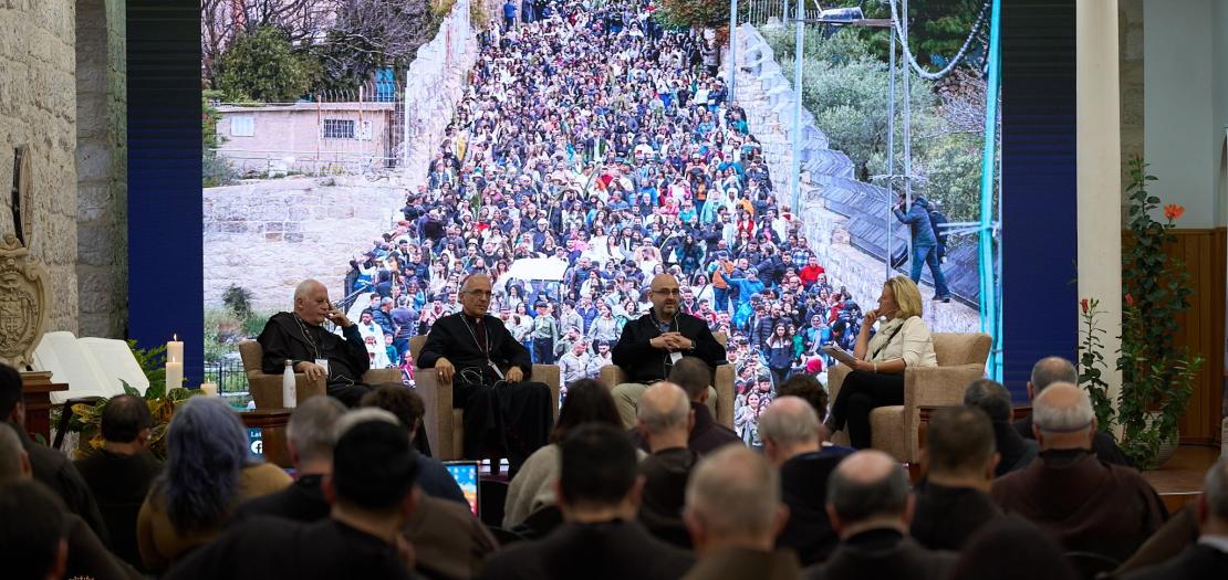n the heart of a conflict that has now lasted for two years and has left the whole Holy Land in a climate of fear, suspension and division, the congress gave voice to the "living stones", the local Christians who live the tensions and wounds of this land every day. The panel moderated by Alessandra Buzzetti, correspondent of TV2000, brought together Mons. Rafik Nahra, patriarchal vicar for Galilee, Fr. Amjad Sabbara, parish priest in Jerusalem and now in Nazareth, and Elias Habash, head of the Latin Scouts of Jerusalem. Their interventions outlined a painful but also rich and hopeful picture, marked by the awareness that Christians still have a fundamental mission, "to unite and not divide".