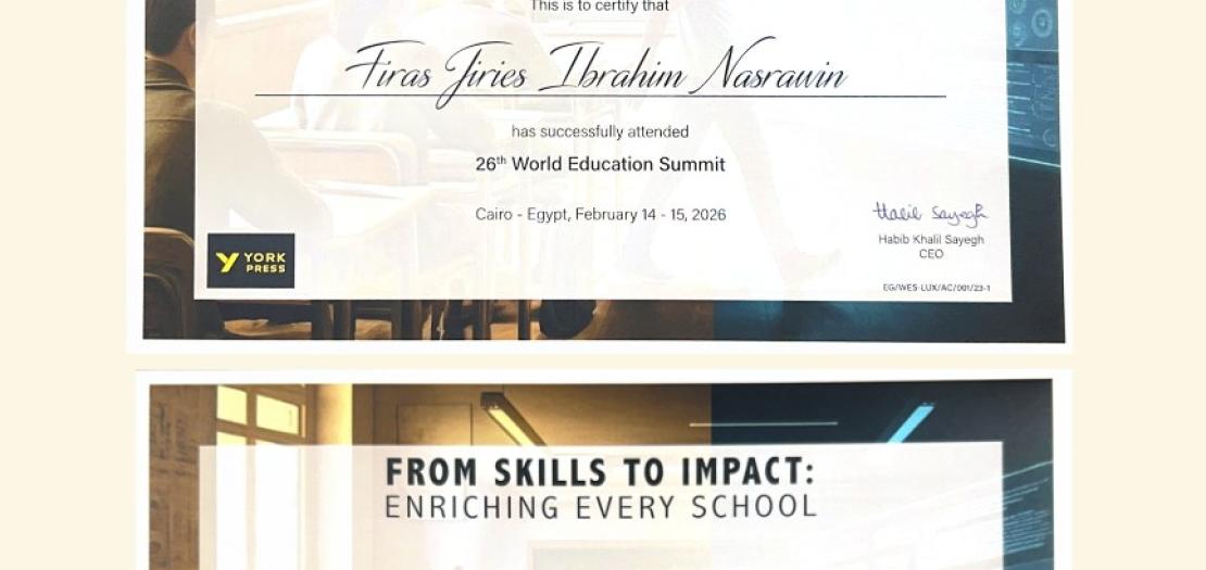 General Director of the Latin Patriarchate Schools in Jordan Fr. Dr. Firas Nasrawin and Academic Coordinator Ms. Rula Sawalha have participated in the 26th World Conference held in Egypt at the invitation of York Press in cooperation with Pearson, and in the presence of delegations from various Arab and foreign countries. The conference marked a pivotal milestone in exploring the future prospects of education and the anticipated transformations.