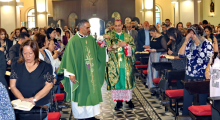 At the beginning of the celebration, Msgr. Twal blessed the holy water and sprinkled it over the faithful and on the walls of the church, marking the return of liturgical life to the Church following the period of renovation and restoration.
