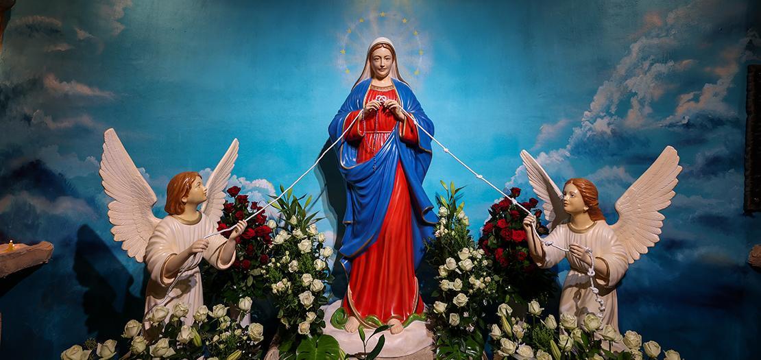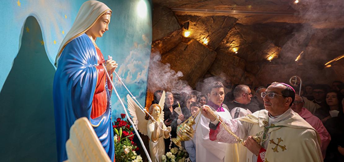 Following the Holy Mass, Bishop Twal, along with the parish priest and a group of priests, inaugurated the new grotto, namely the Grotto of Blessed Mary Undoer of Knots. A large group of parishioners gathered at the grotto holding candles and scattering rose amidst recitations of Marian hymns.