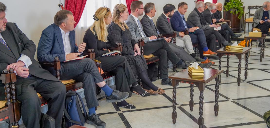 During the visit, the delegation met with His Beatitude Cardinal Pierbattista Pizzaballa, Latin Patriarch of Jerusalem, who briefed them on the four regions of the Diocese of Jerusalem and the pastoral challenges facing the local Church.