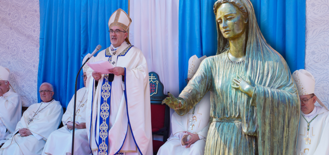 Let us ask Our Lady of Palestine to open our hearts to hope, to open our eyes and hearts not only to our own problems but also to the presence of God among us: among our poor, in our families, in our religious and parish communities, and in our civil society. Once again, we entrust to her our Patriarchal Diocese of Jerusalem, that she may give us the strength to be bearers of joy and hope in our Holy Land.
