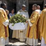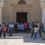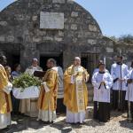 At the end of the celebration, the friars and the faithful set off in a procession towards the Descendendibus Chapel, situated at the entry to the shrine of Tabor. The name alludes to the descent of the apostles from Tabor. “As they were coming down [descendentibus, in the Vulgate Latin Bible] from the mountain, Jesus charged them, “Do not tell the vision to anyone, until the Son of Man has been raised from the dead.” (Matthew 17, 9) Here the Vicar Fr. Faltas, following tradition, gave the friars and the faithful some branches of the oak of Mount Tabor, an evergreen which stands behind the Church, a symbol and souvenir of the place and of the celebration.