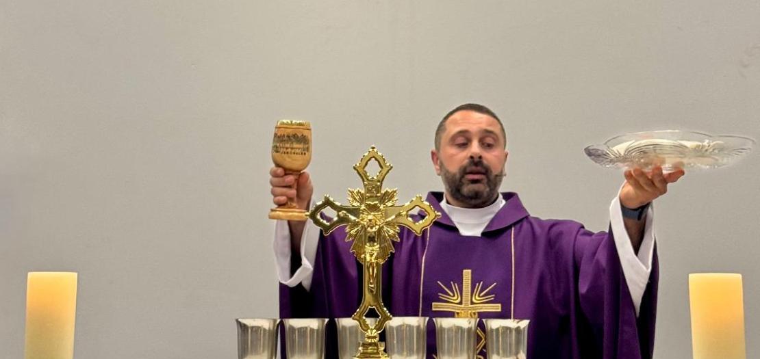 Flourishes of the culture were present in the Mass in several ways. The liturgy was bilingual, with the Gospel proclaimed in English, but several parts of the Mass — the Confiteor, the first reading, the consecration — were spoken in Arabic.