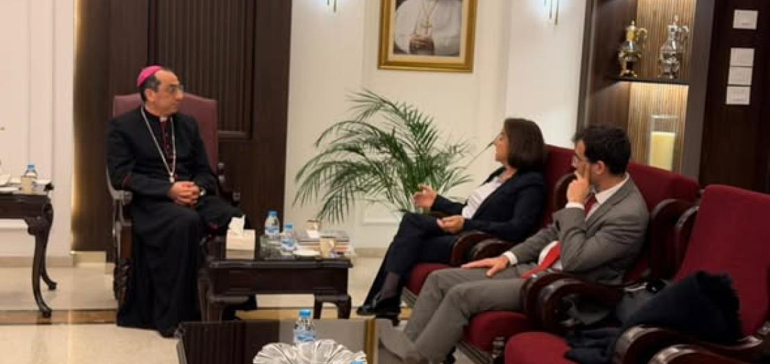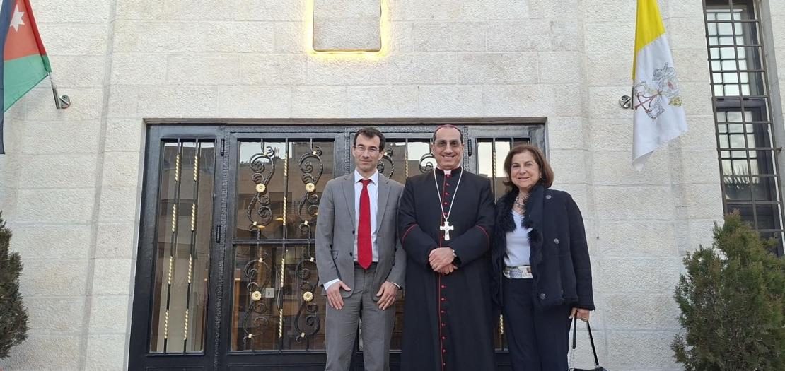 On Monday, March 9, 2026, Head of the Delegation of the European Union to Jordan Mr. Pierre-Christophe Chatzisavas, visited the Latin Vicariate in Amman, accompanied by Executive Director of Friends of Jordan Festivals Association Ms. Suha Buwab, where he met with Latin Patriarchal Vicar for Jordan Bishop Iyad Twal.