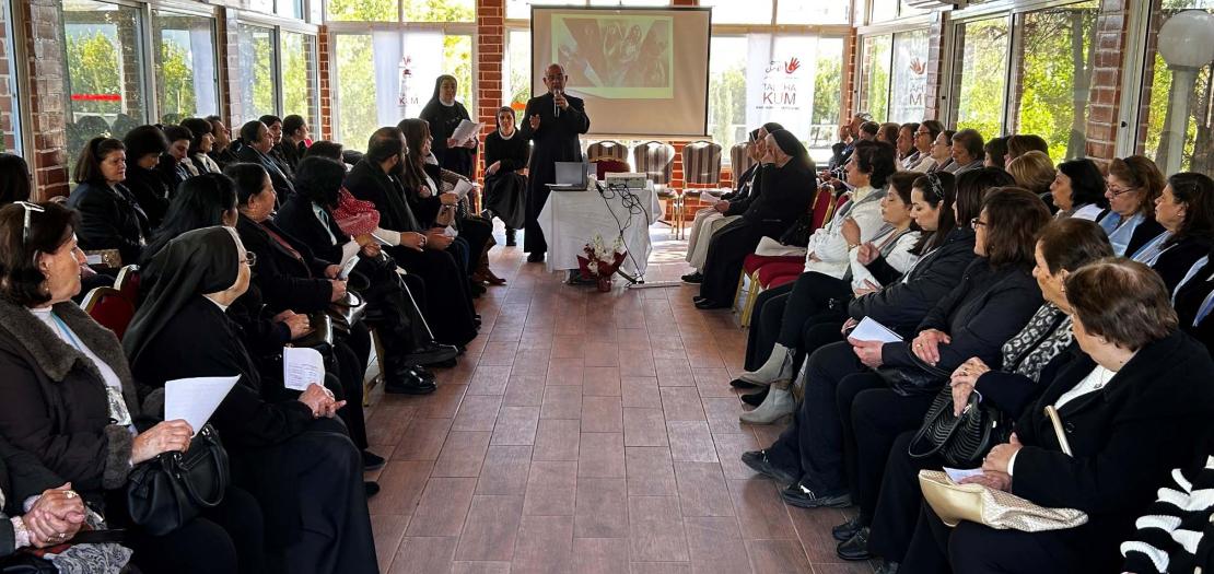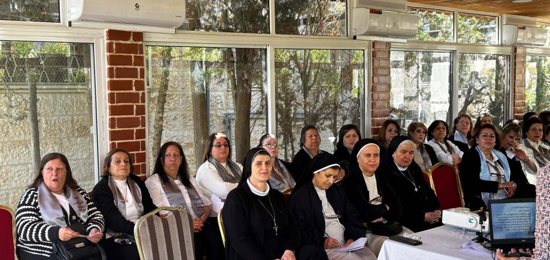 About 120 women participated in the meeting from various Zarqa quarters along with the region’s priests and nuns, in order to experience at this holy time the spirit of prayer, fasting, repentance, listening, and discernment, and to share in each other’s experience as mothers who preserve life, to raise awareness of women and empower them, as well as to confront the challenges of daily life and its developments, and to raise awareness about striving to reduce human trafficking.