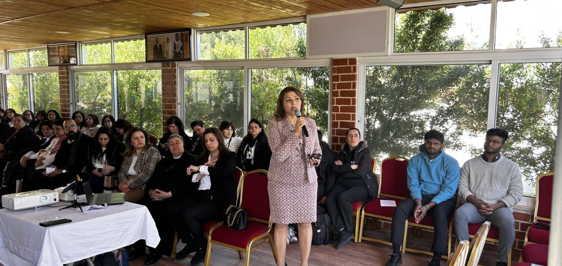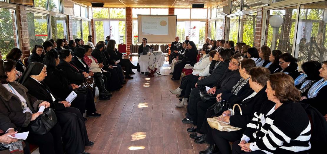 Following a welcoming address by Fr. Hani Jamil, and a prayer for fasting by Sister Cecile Hijazin, representative of the Union of Religious Congregations, and saying a prayer for peace in the world especially for our region, our holy land, Sister Marie-Pierre, director of the Rosary Sisters School in Jabal Amman, gave a lecture titled, "The Value of Women in the Holy Bible and Their Roles in Education" which touched on the life of women in the entire Holy Bible. The lecture ended with a question: What can we learn from them?