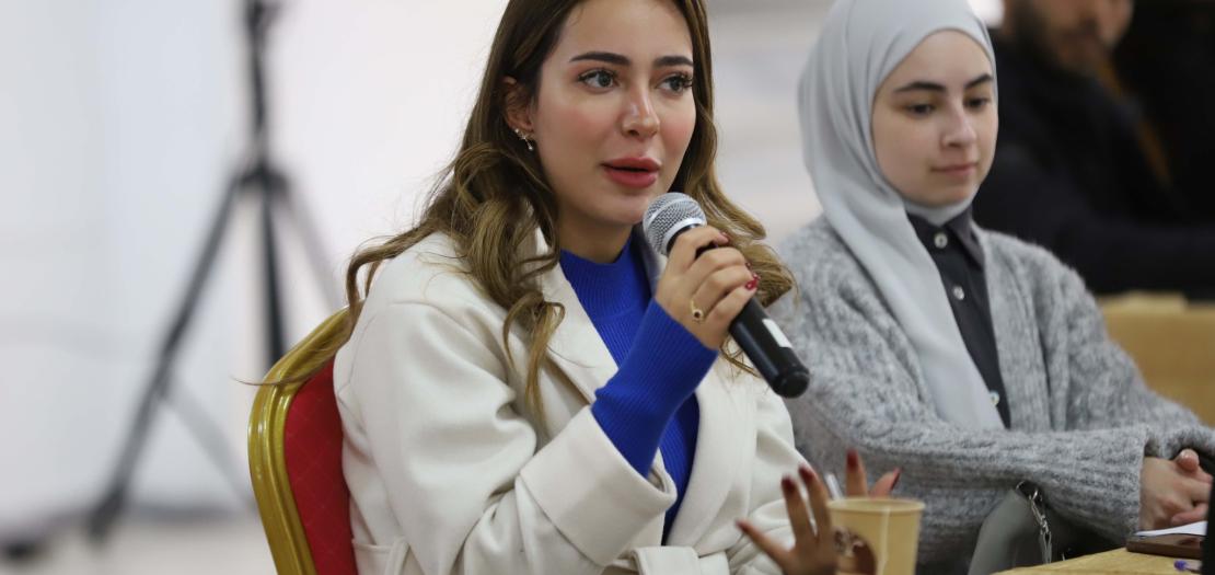 During the workshop sessions, Tunisian trainer Shahrazad Ibn Hamida presented the three workshop sessions, bearing in mind that she is a lawyer, a university professor specializing in law, as well as an expert in peace-building and conflict management. She currently works as a consultant in the field of effecting justice at the Arab Institute for Human Rights.
