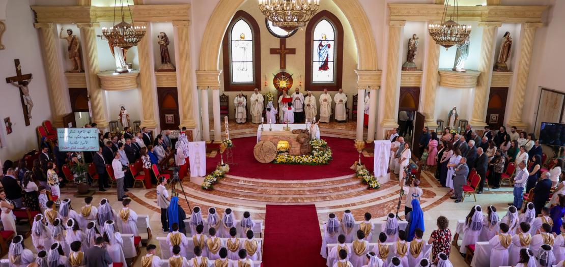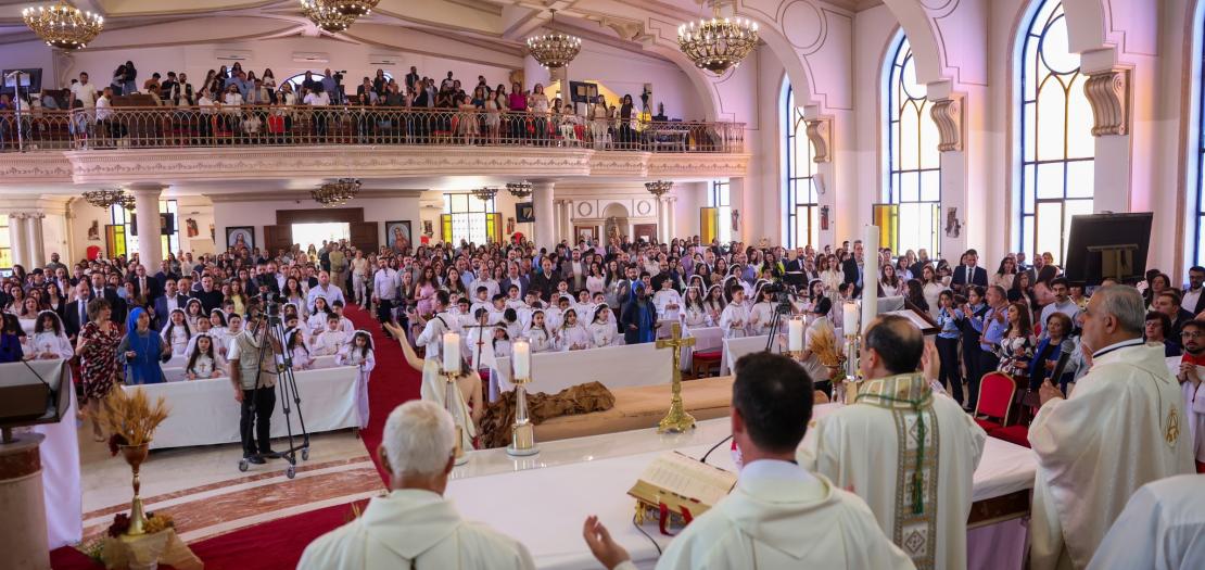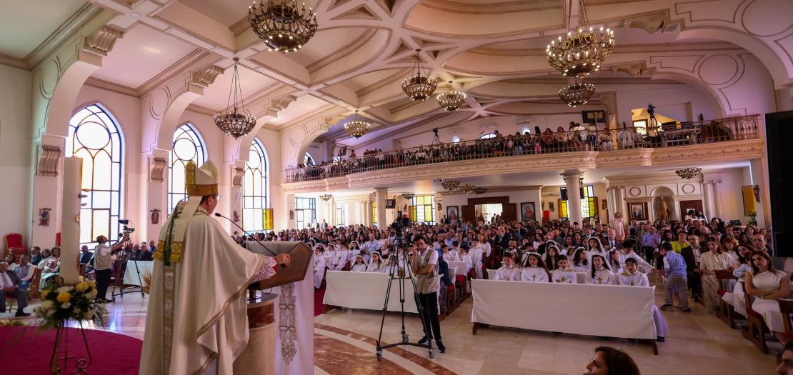 At the outset of the Holy Mass, parish priest Fr. Dr. Rifat Bader said that this occasion represents an important milestone in the journey of faith for the children who have been prepared for it with love and care, accompanied by priests, nuns, and teachers. He blessed them and their families, describing them as “new grains of incense” in the Church, while referring to them being witnesses of faith.