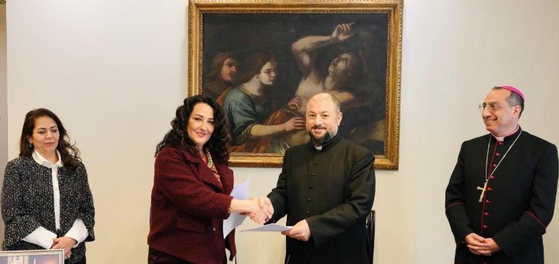 In a qualitative step designed to reflect a firm commitment to strengthening institutional cooperation and community service, a strategic partnership agreement was signed between the Latin Patriarchate Schools and the Young Women's Christian Association (YWCA), in the presence of Latin Patriarchal Vicar for Jordan Bishop Iyad Twal, YWCA President Ms. Saba Haddad, and Captain Ma’in Odeh.