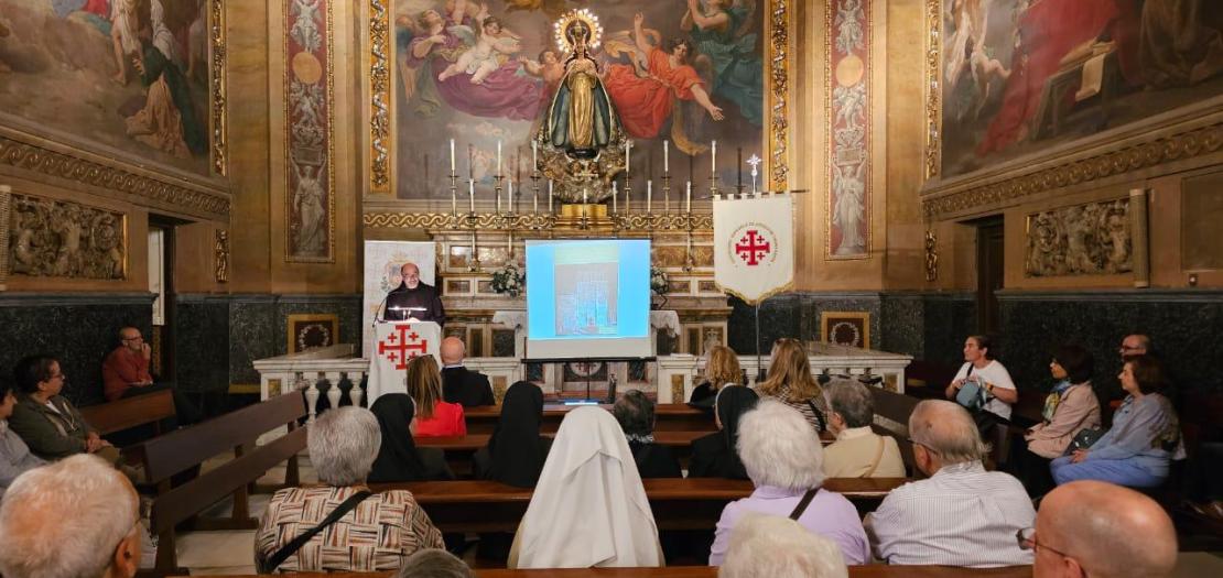 The president of the Friends of the Holy Land Association, Rafael Martínez Casado, officially introduced the author, Maria Cristina Rattighieri, and Brother Quirico, who played a key role in the book’s publication.