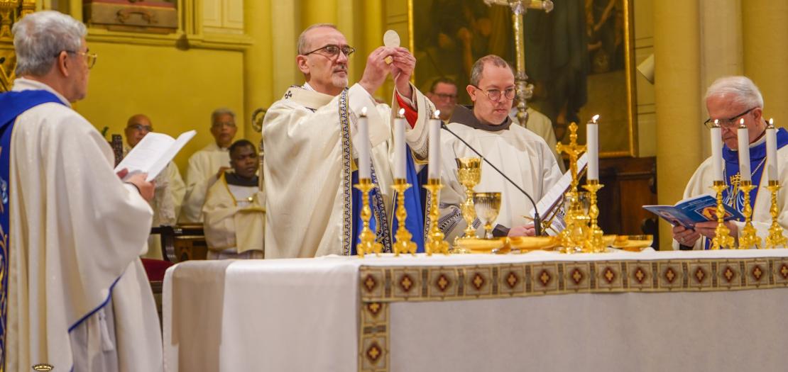 The Mass was concelebrated by Msgr. William Shomali, General Vicar of the Latin Patriarchate, Msgr. Adolfo Tito Yllana, Apostolic Nuncio to the Holy Land, Msgr. Bolous Marcuzzo, and Msgr. Ilario Antoniazzi, together with several priests. The celebration was attended by the Spanish Consul, representatives of the French and Italian Consulates, as well as numerous Knights and Dames of the Order of the Holy Sepulchre , religious sisters, and the faithful of Jerusalem.