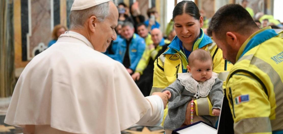 Pope Leo XIV met with members of the Italian voluntary organziation at an audience in the Vatican on Saturday, February 14.