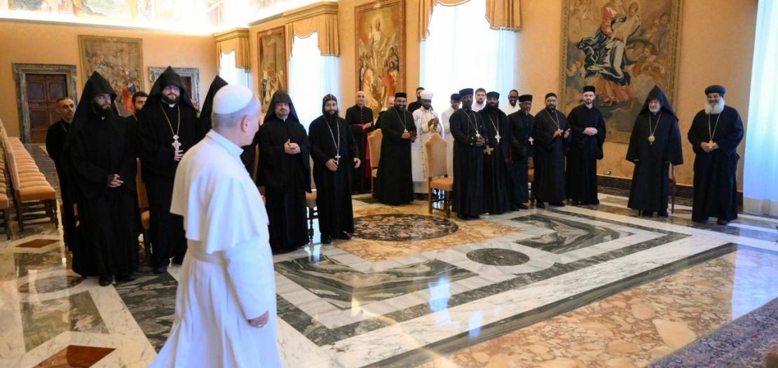 Greeting those before him representing the Armenian, Coptic, Ethiopian, Eritrean, Malankara, and Syriac Orthodox Churches, the Pope recalled the words of Saint Peter, "Peace to all of you who are in Christ."