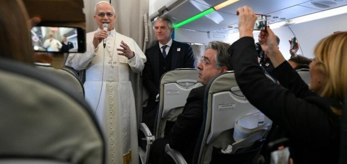 “It’s a wonderful day to celebrate, and I want to begin by saying thank you to each and every one of you for the service that you offer to the Vatican, to the Holy See, and to my person, but also to the whole world,” he said to the over 80 journalists on board the flight to Ankara, the first stop of his first Apostolic Journey that will bring him to Türkiye and Lebanon from November 27 to December 2.