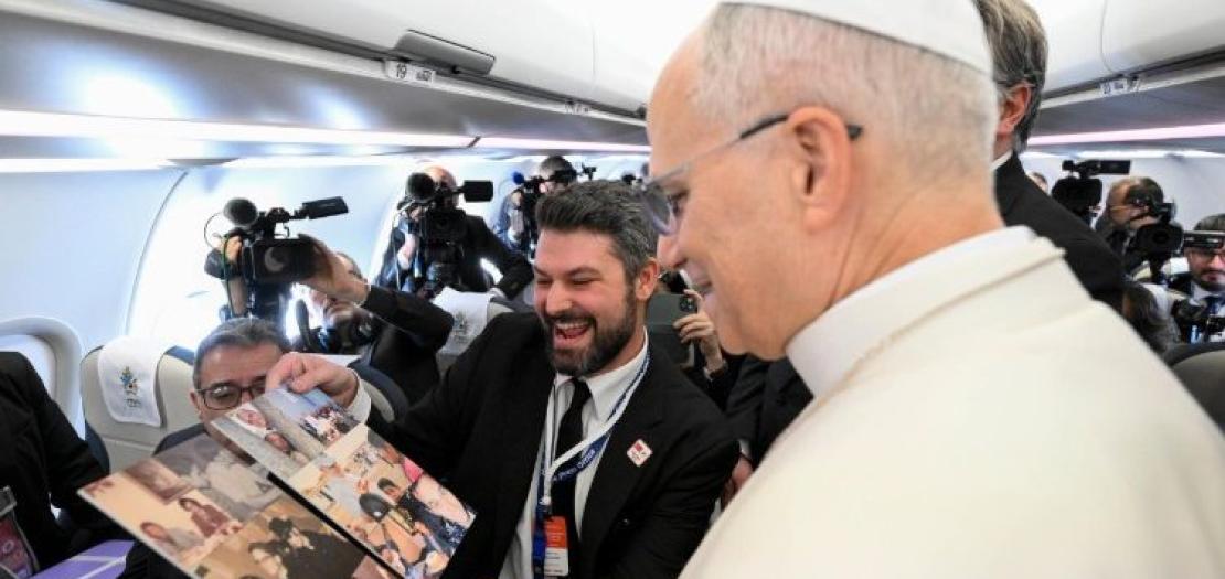 Another journalist gave the Pope a parchment from the Ukrainian Greek Catholic Church of Kharkiv, thanking the Holy Father for the assistance he has provided to the Ukrainian people suffering from the war. Lastly, when speaking to a journalist of Algerian origin, he told her that he hopes to visit the country.