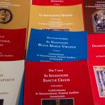 These 53 booklets refer to 53 liturgies that contemplate the sung nocturnal office. The color follows that of the liturgy of the day and the images on the covers are taken from works of art, paintings, and liturgical objects preserved in our convents and in our communities. This also allows giving visibility to the enormous artistic heritage of the Custody of the Holy Land. Many of these works will also be presented in the section of History and Art of the Terra Sancta Museum.