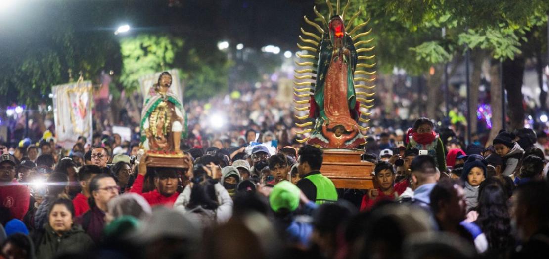 Devotees of Mexico’s patron saint, the Virgin of Guadalupe, flooded streets overnight near the capital’s Basilica of Our Lady of Guadalupe, carrying images of her on their backs and converging with music, bottle rockets, candles and prayers.