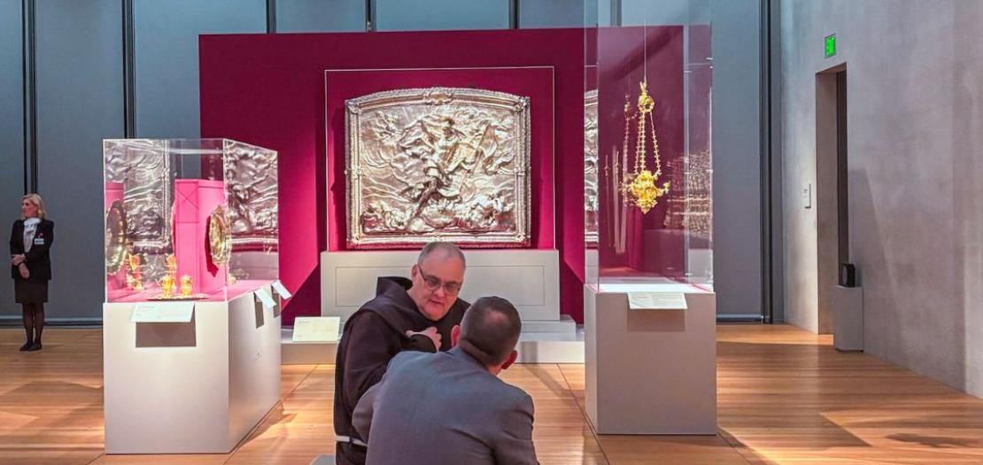 Despite the war looming over the Holy Land, part of the team of the Terra Sancta Museum , Art & History traveled to the United States. Fr. Stéphane Milovitch, President of the Board of Directors of the Terra Sancta Museum, and Claudio Domeneghetti, Project Coordinator, arrived in Texas in Fort Worth to attend the press preview and the opening ceremony of the exhibition “The Holy Sepulcher, Treasures from the Terra Sancta Museum, Jerusalem” held at the Kimbell Art Museum on March 15.